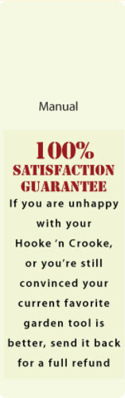 This garden weeder is so versatile it almost makes weeding fun. Now you can stand up while doing the precision weeding around plants and in those tight spots where you previously had to get on your hands and knees. The rigid blade on a heavy duty handle slices through weeds with less effort. The flat blade is suited for weeding in open spaces using a back and forth action as well getting in between plants and next to bulbs. The tip has many functions. It can be used to isolate individual weeds or score the ground to loosen the soil. The flat blade slices weeds just below the surface. Less soil is disturbed, which brings fewer new weeds to the surface. This action also aerates the soil. Because the handle mounts over the blade you can see the vertical blade edge and always know how close you are to your plants. Flip the blade over and use it as a rake to remove cut weeds or smooth out the area. These features make the Hooke ‘n Crooke™ a great tool for maintaining your garden or landscape. Stand up straight, lay the flat blade in the dirt, pull it back to slice just under the surface and let the tool do all the work. Review our manual to see more uses for this revolutionary tool.